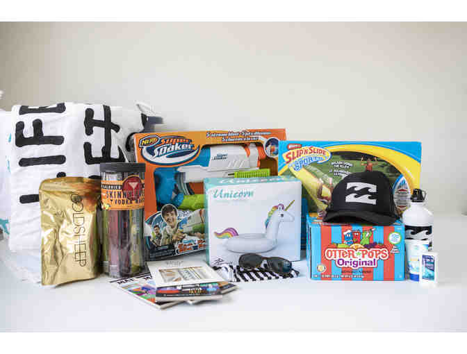 There perfect summer basket has everything you need to survive the heat and your kids being at home. Ride a duffy, go to the movies, or hit the beach and grab Ruby's or yogurt, or have some good old fashioned fun at home with a slip 'n slide, super soaker, and otter pops! But wait there's more...