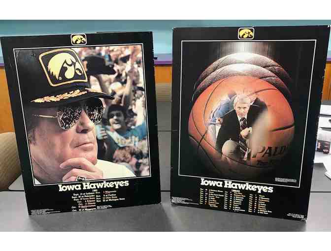 These vintage Legendary Iowa Hawkeye Coaches Posters are the perfect addition for any Hawkeye Collection! This set includes one Hayden Fry 1980 Football Poster and one Lute Olson 1980/1981 Basketball Poster.