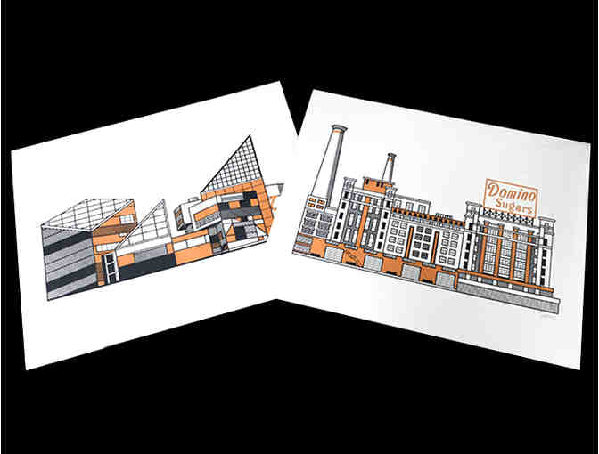 Illustrations of two iconic Baltimore buildings: The Domino Sugar Building and The Aquarium. Each print measures 16" X 20" and is perfect for your office or home. Suburban Avenger Studios is a small Baltimore-based illustration and print outfit run by Luke Martin and his disloyal cat, Meatball.