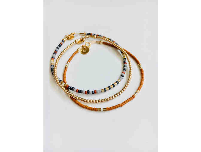 Local jewelry mama Denise Bell of Half Full LA handmade this gorgeous set of 3 glass and gold filled bracelets just for WE.