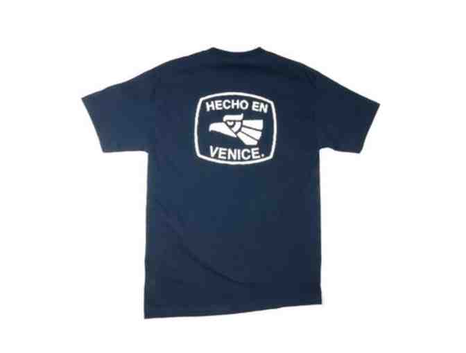 Hecho En Venice t-shirt is a Child's XL (6-8) Navy and white. 100% Cotton.