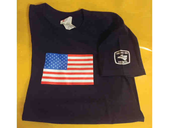 Hecho En Venice t-shirt is a Child's XL (6-8) Navy 100% Cotton w/ American Flag