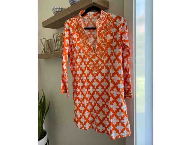 Barbara Gerwit: Block Print Woven Tunic with beading in Orange