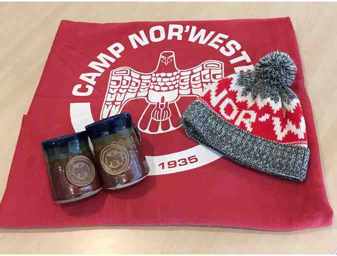 Bring home the treasures of Trader Horn with this great assortment of Nor'wester swag: 1 acrylic knit beanie, one fleece throw, and two limited edition ceramic mugs.