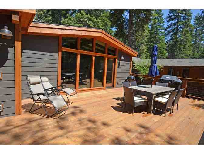 The great room has a gas log fireplace creating a warm and inviting space on those snowy winter or cool Tahoe evenings. The fully-equipped modern kitchen opens to the dining and living area - perfect for a family or friends social gathering. All the bedrooms are warm and welcoming with cozy down comforters. A new very large deck with a BBQ and outdoor furniture offers a peaceful place to hang out and relax after a day of Tahoe fun. A short, easy, less than 5-minute walk takes you to Lake Tahoe for some beach time, Stand Up Paddle Boarding, and swimming.