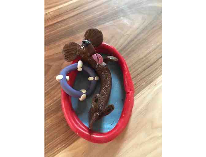 Handmade from clay, approximately 4" x 2" x 2", raft is not attached.