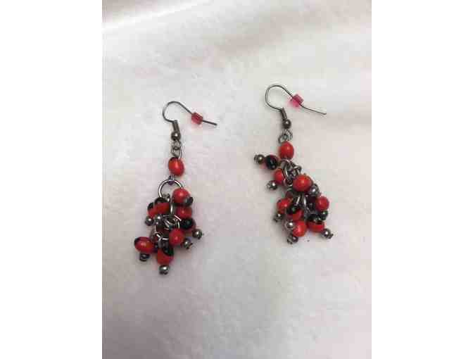 These unique French-wire earrings are crafted from real seed pods. They measure 1.5 inches in length. The vivid red and black seed pods are very colorful and lightweight.
