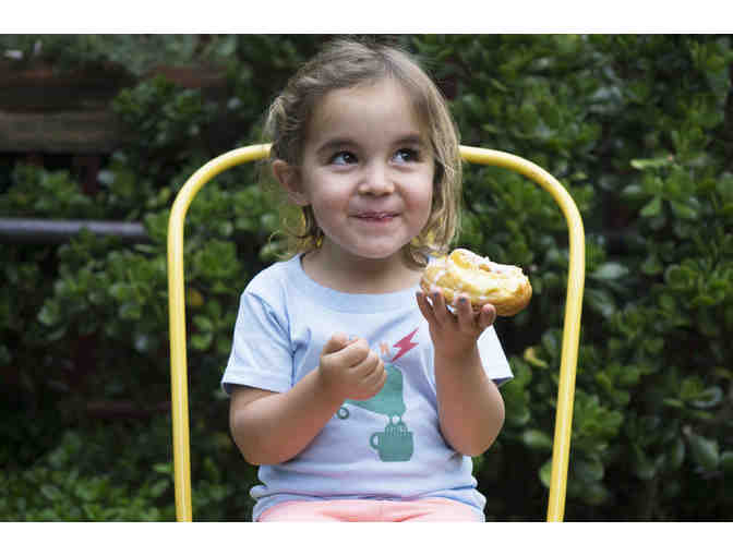 The Dynamo Kids Tee features the company's colorful mixer on the front and logo on the back. This adorable tee is a must-have for all mini donut lovers!