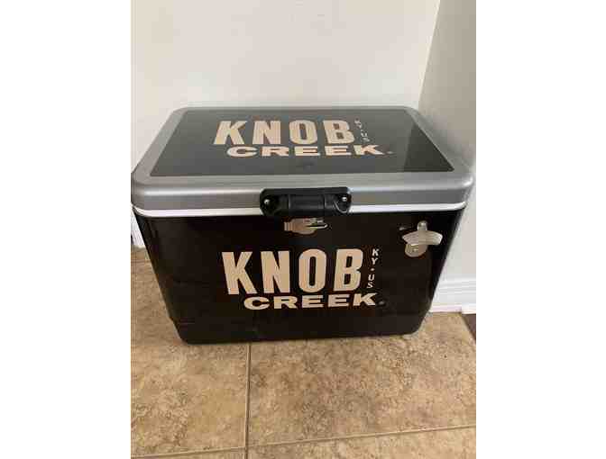 Knob Creek cooler of alcohol donated by Beam Suntory. Alcohol includes Jim Beam Black Extra-Aged Bourbon, Effen Vodka, Effen Cucumber Vodka, Makers Mark and Hornitos Reposado Tequila. Valued at $200
