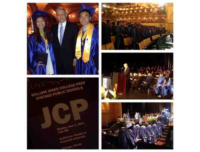 Four (4) seats in LOWER BOX L4 will be reserved for you and three guests to attend Jones College Prep's 2020 Graduation ceremonies on Sunday, June 7 at 6:00 PM at the Auditorium Theater!