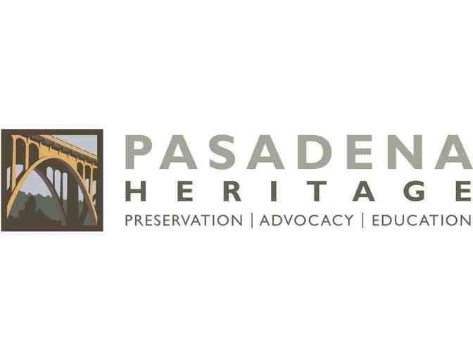 Pasadena Heritage Dual/Family Membership entiles recipient to discounts on Pasadena Heritage events, special invitations to member-only tours and events, as well as advance notice of upcoming programs. Members also receive a tri-annual newsletter, as well as access to the Craftsman Referral File. The Old Pasadena Walking Tour is a 2-hour narrated and guided tour through Pasadena's historic commercial corridor.