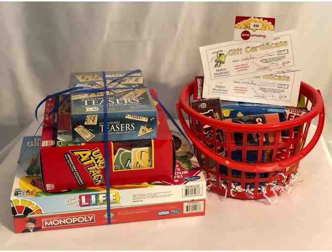 Enjoy family time! Go to the Movie $50 Movie Gift Card. Stay home and play games and order Pizza. Mellow Mushroom $50 Gift Cards and $20 Chick Filet Gift Card. Play Uno Attack, The Game of Life, Brain Buster, Monopoly, Coilz Cup Game and the Dice Game/Left/Center/Right. Movie Candy and Popcorn can be enjoyed anytime by all!
