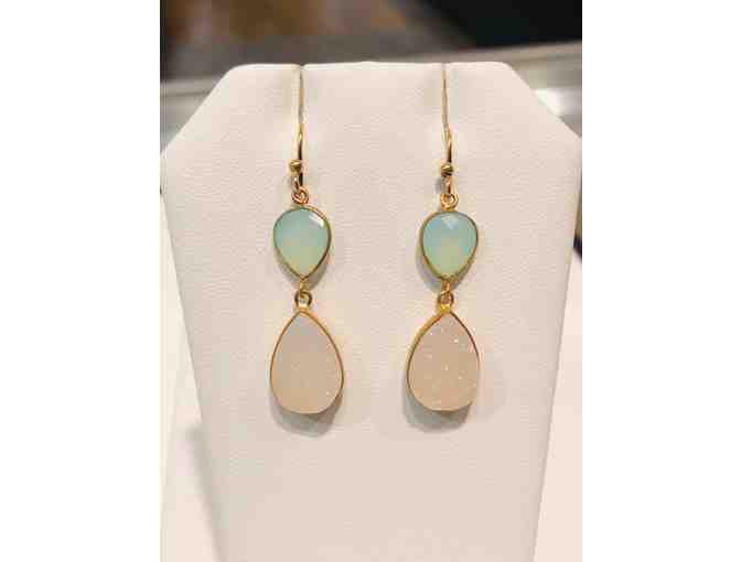 Beautiful sterling silver 14kt gold plated chalcedony and druzy white stone dangle earrings.