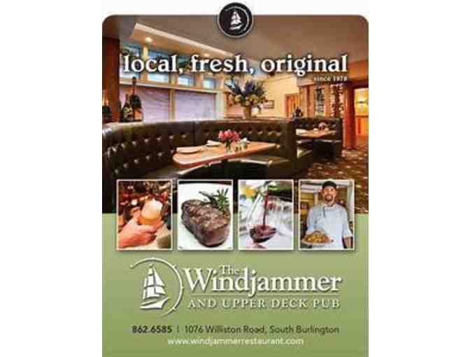 Gift certificate for $25.00 towards purchase of food and beverage at the Windjammer Restaurant, Upper Deck Pub or a stay at the Best Western Windjammer Inn and Conference Center.