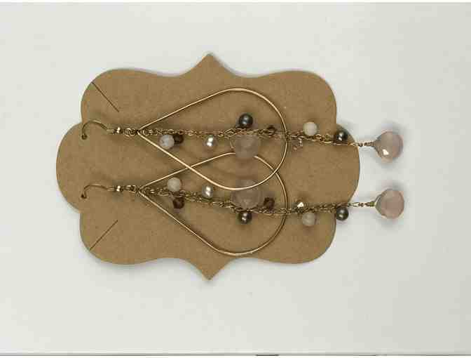 Handmade gold fill teardrop earrings with rose quartz, peruvian opals, freshwater pearls and swarovski crystals.