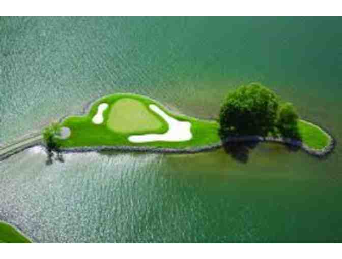 This gift certificate entitles four (4) guests play an eighteen hole round of golf, carts included, at The Water's Edge Golf Course on Smith Mountain Lake,