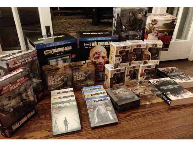Ultimate Walking Dead Fan Pack include season 1- 4 DVD's, season 1-4 Blue Ray Discs, Bobble Heads, Walking Dead compendium 1 and 2, and more.