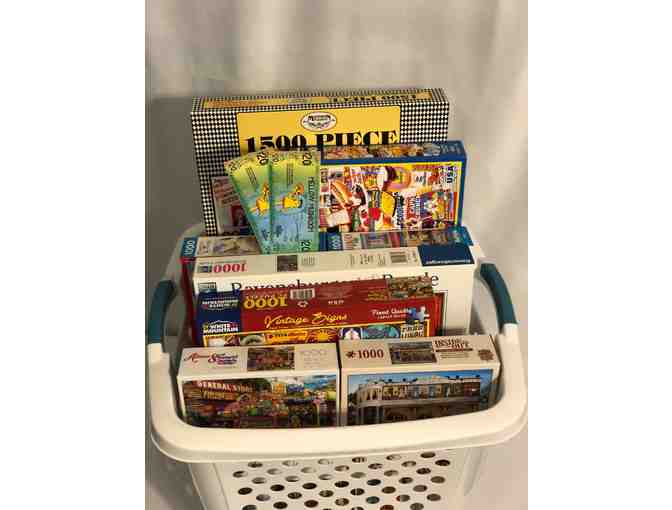 1500 piece puzzles and 1000 piece puzzles will keep you and the family busy for hours.