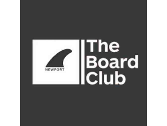 Join The Board Club for one month! The Board Club is a Newport Beach surf club that provides our members with unlimited access and exchanges to a large variety of quality surfboards from established shapers throughout California. From 7'2" single fins and old school longboards to the latest high-performance shortboards, every surfer now has the ultimate quiver for all wave conditions. Membership also includes social events and activities, networking opportunities, surfboard design education, surf coaching, ocean skills and fitness training, photo and video surf sessions, and special discounts to local businesses throughout the Newport Beach community.With membership you will recieve: