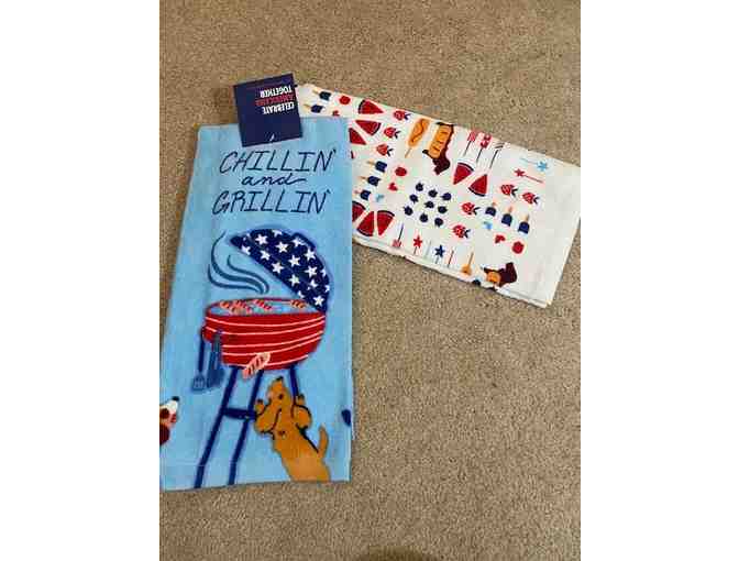 Set of 2 Dachshund "Chillin & Grillin" Terrycloth Kitchen Towels. 16" W x 26" L.
