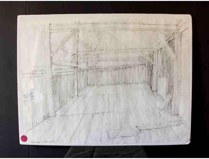 Williams Barn, Groton MA, Interior View - Original Pen & Ink Drawing by Bayard Underwood