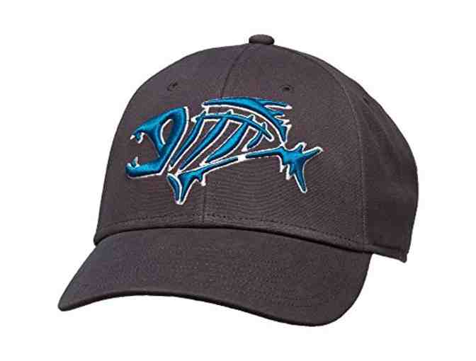 G. Loomis hat with moisture wicking sweatband, micro hook and loop closure (adjustable) and no-slip grip on undervisor in charcoal.