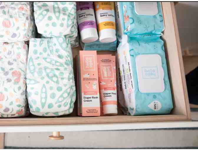 You are bidding on Three Months of Diapers, Wipes, Shampoo, Bubble bath, and Lotion from HelloBello.