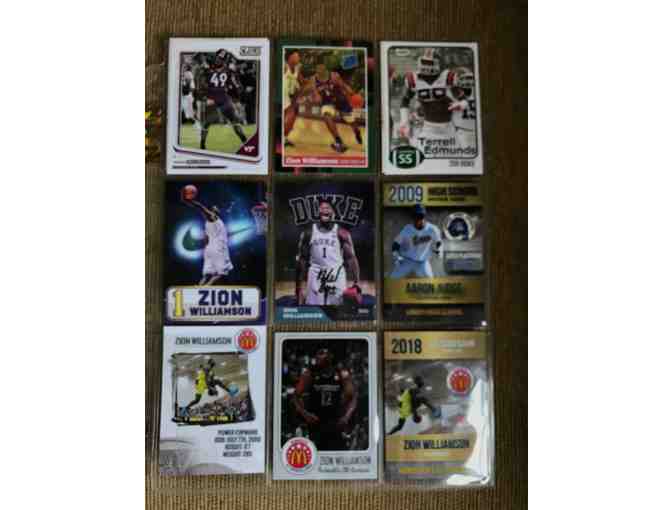 Assorted trading cards. Includes several Zion, Tremaine Edmunds, Terrell Edmunds and Aaron Judge.