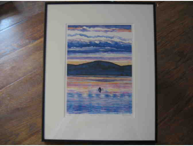 This item is a framed giclee print by Deborah Holmes titled "Evening Paddle". 50 of 250, Visit her gallery at: http://www.deborahholmeswatercolors.com/