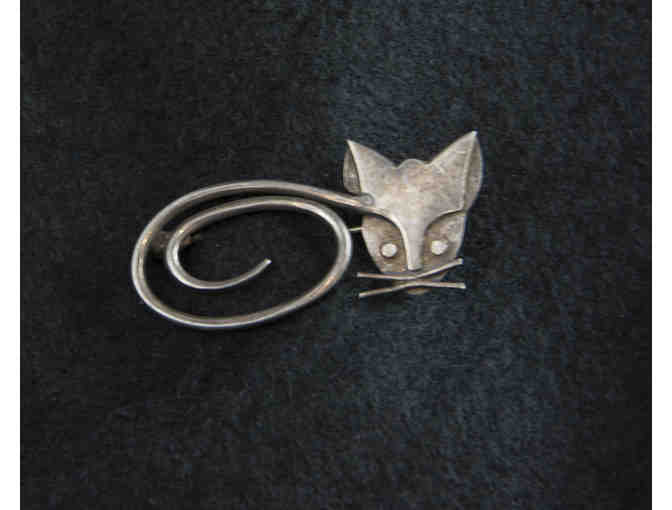 This abstract pin captures the essence of a feline with a few curving lines and a mischievious face, complete with whiskers. This vintage piece bears the marks Mexico and 925.