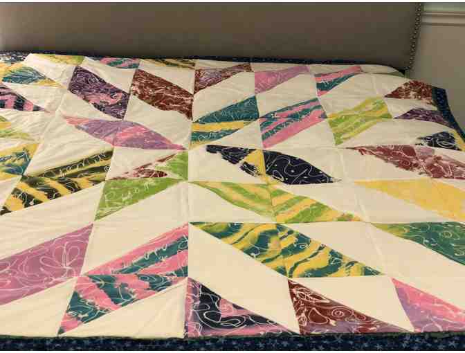 Your family will love this unique and timeless quilt. The fabric was wax batiked with each kindergartner's name then each child painted their piece of fabric. This is truly a one-of-a-kind keepsake that you can use, wash and keep to remember those special kindergarten classmates. About 5'x5' includes a sweet small pillow 16in to match.