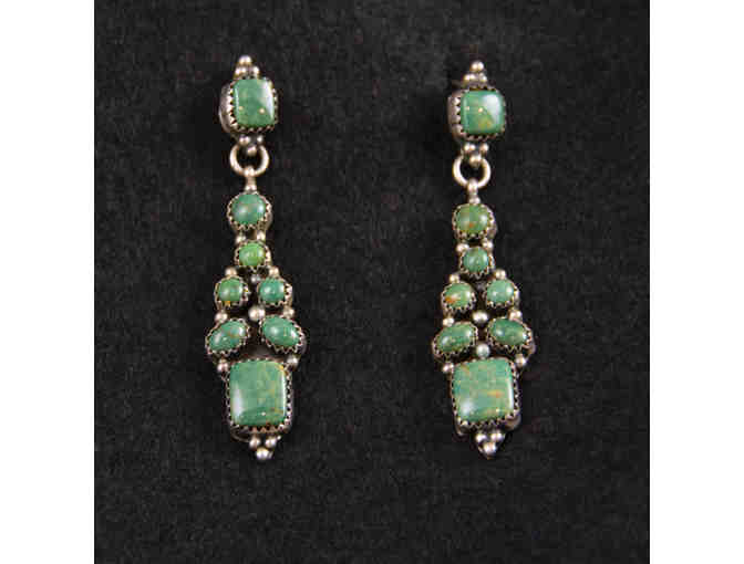 Details: Earring length is 2 3/8"; largest turquoise stone measures approx. 3/8" x 3/8". Excellent condition.