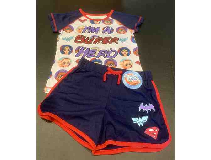 Take charge with this cute 2-piece flame resistant sleepwear set, 'I'm a Super Hero' tee & shorts by DC Super Hero Girls, Size Medium (7/8)