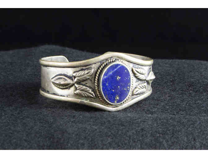 Handmade Silver-plated Cuff Bracelet with Lapis Stone