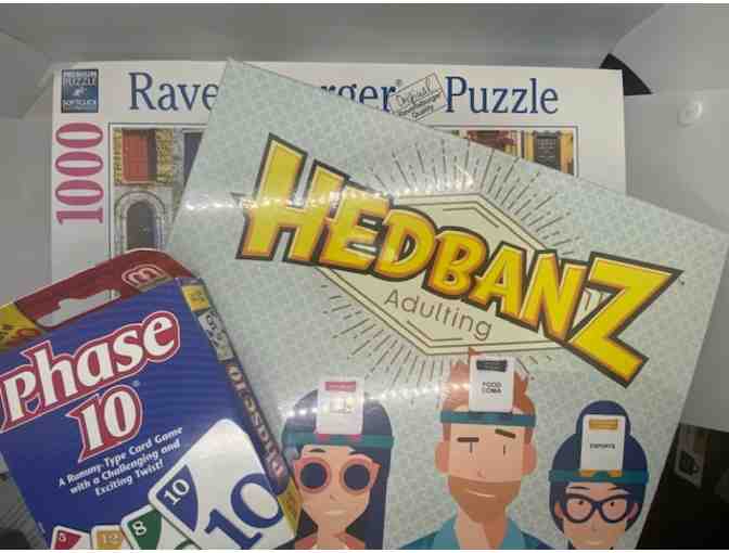 Enjoy some family fun! Item includes Phase 10, Headbandz, and a jigsaw puzzle.