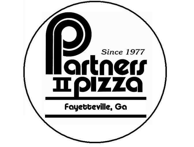 Three gift Certificates each valid for a large 1 topping pizza at Partners II Pizza in Fayetteville, Georgia.