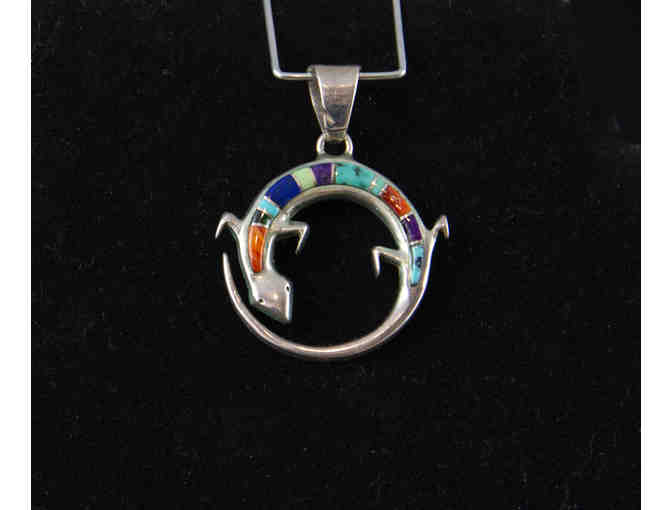 Handmade Sterling and Semi-precious Stone Lizard Pendant, A Touch of Santa Fe