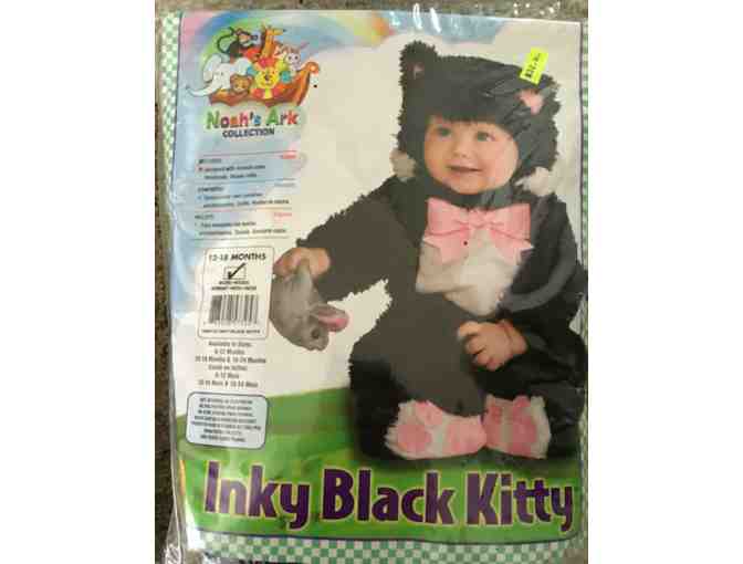 Noah's Ark Collection - Inky Black Kitty Halloween costume, size 12-18 months jumpsuit with nonskid soles, headpiece, mouse rattle