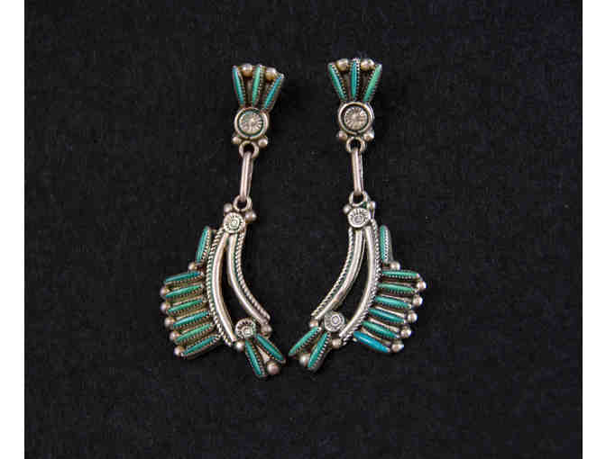 Zuni Petit Point Turquoise and Sterling Magpie Earrings, likely Bryant Waasta