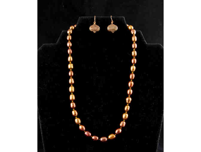 Chocolate Pearl Necklace with Coordinating Copper Earrings