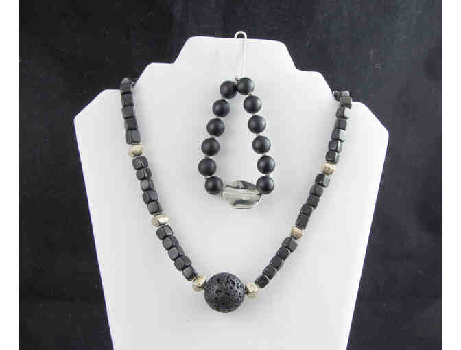 Lava Rock and Black Stone Necklace with Matching Bracelet