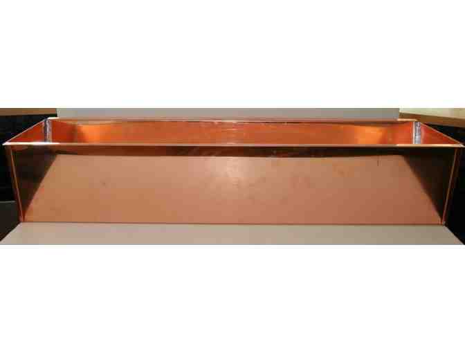 This is a Solid Copper Planter which measures 6" high and 30" long. Donated by Murphy's Metals of East Middlebury, VT.