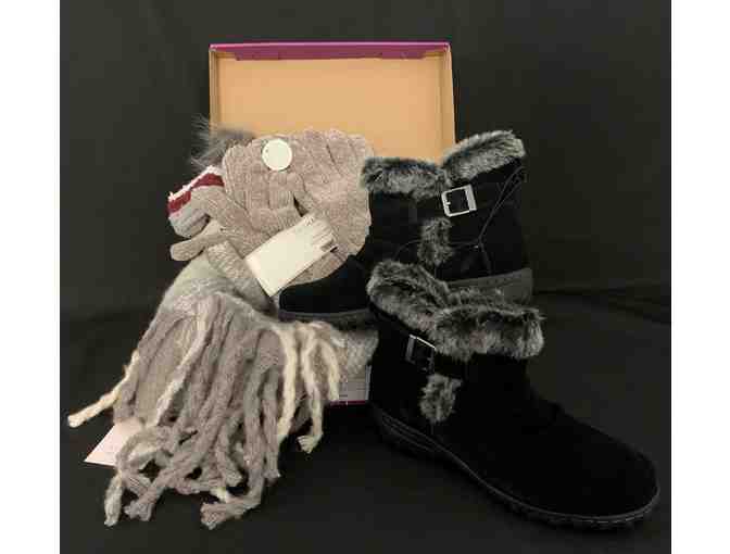 "Keep Cozy and Warm" Basket - Khombu Boots, Scarf, Sag Harbor Hat and Gloves - $75