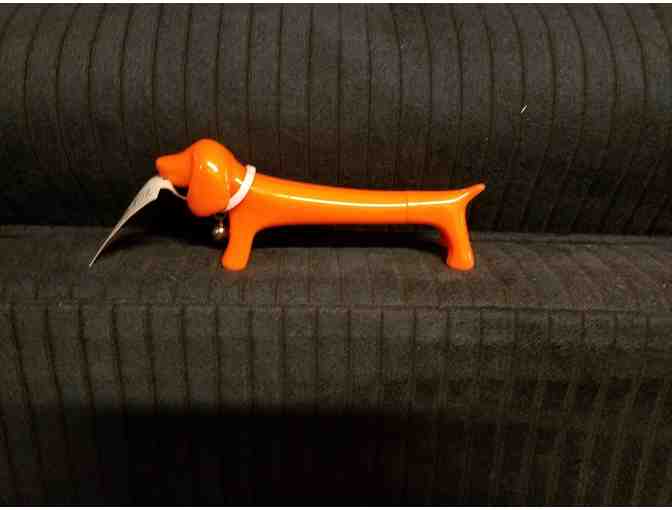 This delightful orange dachshund hides a secret pen in it's hind end. Has a white collar with a mini-bell. A great conversation starter.