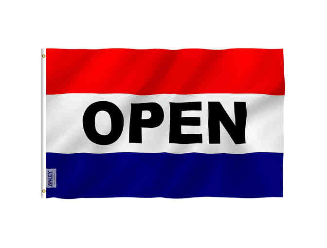 This is a 3' X 5' Nylon Flag with 'OPEN' printed on both sides. Ideal for telling passer's by that your business is OPEN.