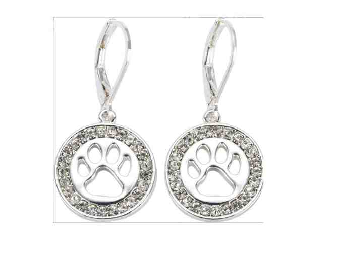 You are bidding on adorable paw cutout earrings Pet Friends! They paw prints circled with clear cubic zirconia stones. Nickel safe and silver-tone plated for a versatile look for daytime or nightime outings. What a great Mother's Day gift!