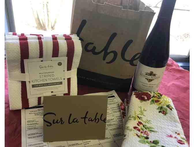Enjoy cooking classes or cookware from Sur La Table with a $180 gift card. Comes with pretty kitchen towels and a bottle of Kendall Jackson Vintner's Reserve Pinot Noir. Donated by FSMH Fourth Grade Families