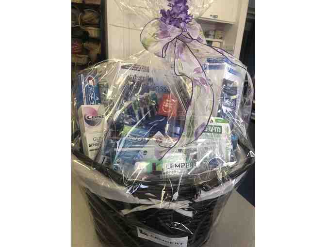 This basket makes dental hygiene cool! All sorts of items to keep your pearly whites white! Includes Waterpik Flosser, Electronic toothbrush system, assorted toothpaste, mouthwash and more! Donated by Lempert Orthodontics