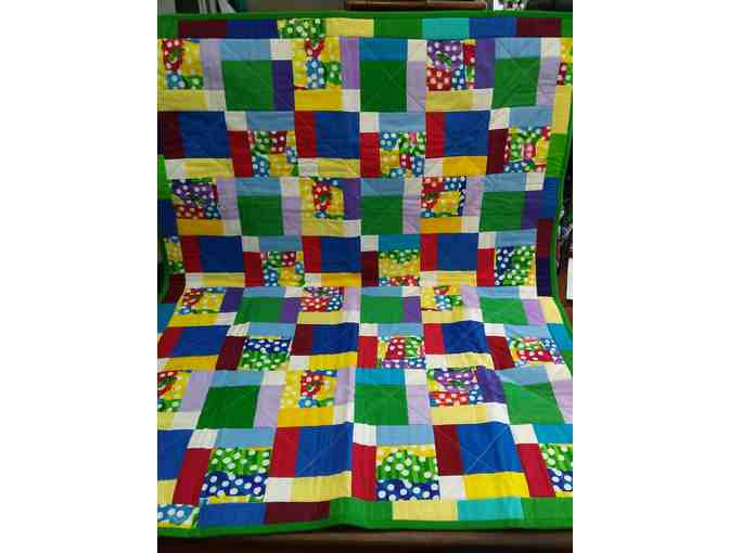 All cotton handmade quilt (32" x 42") featuring Eric Carle Fabrics. Perfect for a lap quilt, baby quilt or wall hanging. The Very Hungry Catepillar is included.