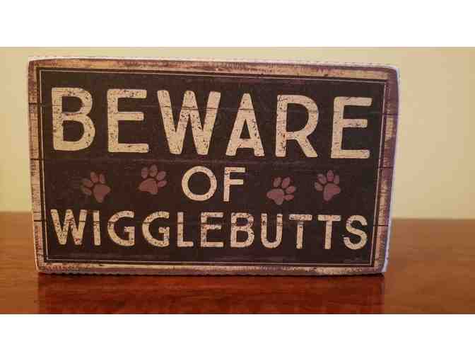 Adorable small decorative sign: Beware of Wigglebutts!" Sign is about 3" x 5"